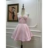 Faitpar Romantic Girl Sweet Style Honey Pink Color Stripes Mesh Cinched Figure Flattering Puffy Dress Sling Dress — koupit online v obchodě na marketplace Joom