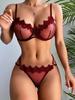European and American Women's Plus Size Sexy Mesh Dress Lace See Through Outfit Sexy Bikini Set T-pants Tie Up