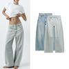 2 Pieces with a Discount of 90% for Foreign Orders, Plus Size Pure Yuan Loose High Waist Wash Straight-leg Couple Blue Daddy Denim