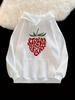 Hooded Sweatshirt Strawberry Cartoon Print Street Fashion Model Wearing Black White Unisex Casual Hoodie