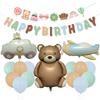 40 Inch Olive Green Digital Car Plane Aluminum Film Balloon Birthday Party Balloon Bear Flag Set Decoration