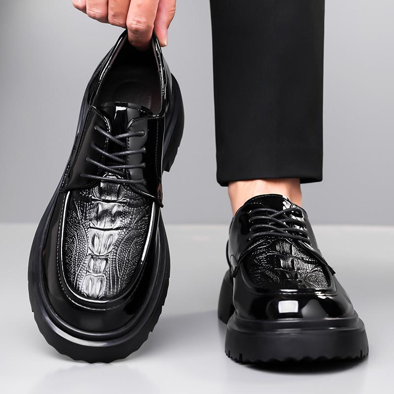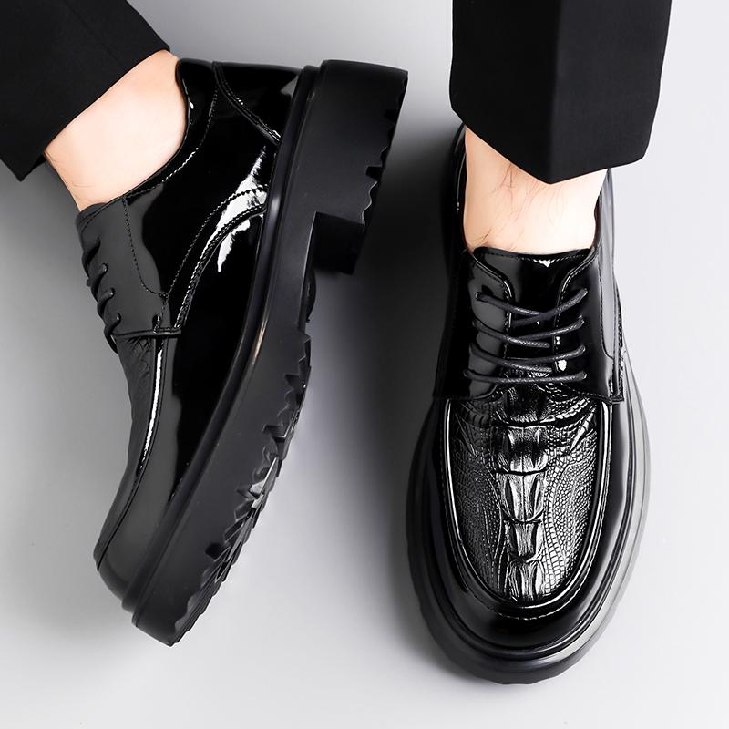 Fashion Autumn New Fashion Lace Up Thick Soled Men's Formal Business Leather Shoes Brand Men's Comfortable Crocodile Leather Derby Shoes