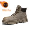 Fashion Men Winter Plush Snow Boots Cow Suede Leather Winter Men Boots Chelsea Fashion Shoes Vintage Motorcycle Boot Warm Winter Shoes