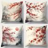 Red Plum Blossom Patterned Pillowcase ,Sofa bedroom cushion cover, single-sided printing, without pillow core