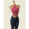 B Style Summer Series Metal Ring Knitting Vest Narrow Shoulder Hollow-out Short Halter Spaghetti Straps Vest