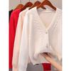 Fall V-neck Knitted Sweater Single Button Cardigan Outwear Pure Color Loose Short Long Sleeve Women's Clothing