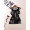 C's Narrow Shoulder Halterneck Stripes Vest Export Accessible Luxury High Elastic Silm Slimming Knitted Sling Tops Women