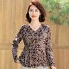 Autumn Long-sleeved New Fashionable Streamer Stretch Printed Temperament Medium-length Middle-aged Elderly Mother Top — koupit online v obchodě na marketplace Joom