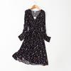 Export Export Elegant Elegance French Vintage Floral Chiffon Dress High Waist Slimming V-Neckline Vacation Dress