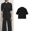 MD Spring and Summer Women's Clothing Old Money Style Relaxed Feeling Lazy Cut Out Polo Collar Short Sleeve Knitting Cardigan 5704559