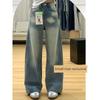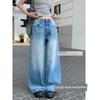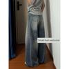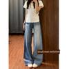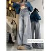 Small Long American Retro Wide Leg Denim Female Summer Crack Washed Loose Drooping Straight Mopping Pants