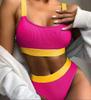 European and American Style High-Waisted Solid Color Bikini Swimsuit for Women