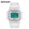 Sanda Průhledný pásek Multifunkční Svítící Voděodolné Sportovní hodinky