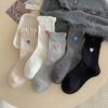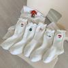 Female Spring and Autumn Solid Color Lace Strawberry Embroidery Boneless Tube Cotton Socks