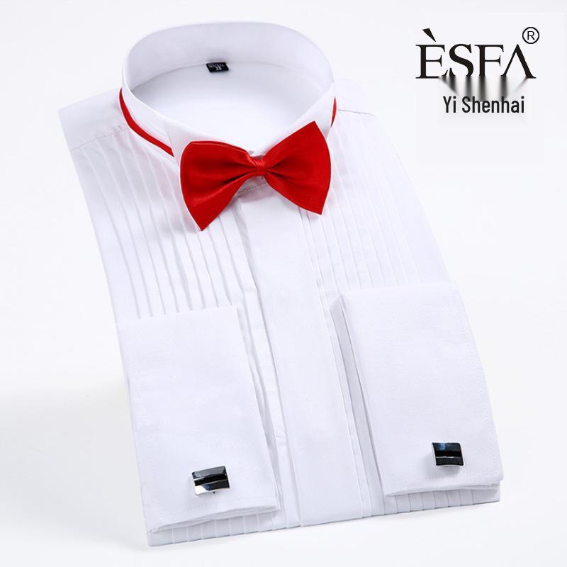 Pozvedněte svůj formální šatník touto sofistikovanou večerní košilí s dlouhým rukávem, ušitou na míru pro svatby a fotoateliéry.. Tato košile, ušitá z pohodlného materiálu ze směsi bavlny, má jedinečný vlaštovčí límec a elegantní jednobarevný design.. Střihově upravený výstřih dodává rafinovaný nádech, což z něj činí ideální volbu pro zvláštní příležitosti.. Jeho všestranný styl kombinuje eleganci s pohodlím, což zajišťuje, že budete vypadat co nejlépe v každém prostředí.