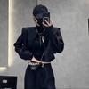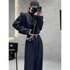 Dámský čínský retro dvoudílný set: Pánská bunda s dlouhým rukávem a kalhoty s vysokým pasem