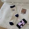 Female Spring and Autumn Sweet Idea Yarn Stripe Lace Letter Cloth Label Boneless Tube Pile Socks