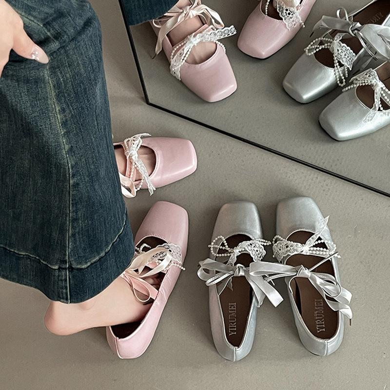 Women's Ballet Shoes French Elegant Lace Bow Mary Jane Single Shoes Beautiful Summer Fashion Pearl — koupit online v obchodě na marketplace Joom