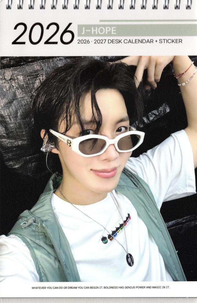 jméno výrobku: J-HOPE Foto Stolní kalendář 2026–2027 (24.5 × 15.0 cm, 26 stran) + Sada 12 samolepek