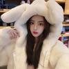 Autumn and winter new hooded fur fur coat horn buckle plush ears thickened coat cute college style — koupit online v obchodě na marketplace Joom