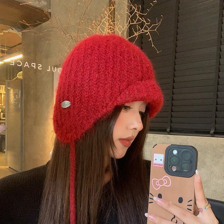 New Little Red Riding Hood Fashionable Solid Color Foreign Style Knitted Hat Versatile Warm Ear Protection Cold Resistant Woolen Hat for Women — koupit online v obchodě na marketplace Joom