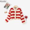 ZANZEA Autumn Spring Women Long Sleeve Striped Casual Knitted Stretch Sweaters Cardigans