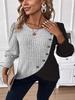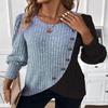 Dámské jarní podzimní pletené tričko s kulatým výstřihem, barevnými bloky, pruhy v podpaží a kříženým spodním lemem, s dlouhým rukávem — koupit online v obchodě na marketplace Joom