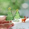 Skleněný vánoční stromek Mini stolní vánoční stromek Figurka s hvězdou na špičce pro zimní svátky na stůl, krbovou římsu, polici, domácí dekoraci
