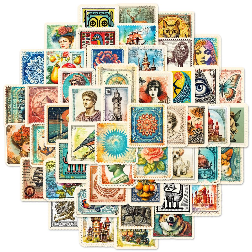 50Pcs Vintage Stamp Graffiti Stickers - Nordic Style Creative Decals for Journal & Item Decor — koupit online v obchodě na marketplace Joom