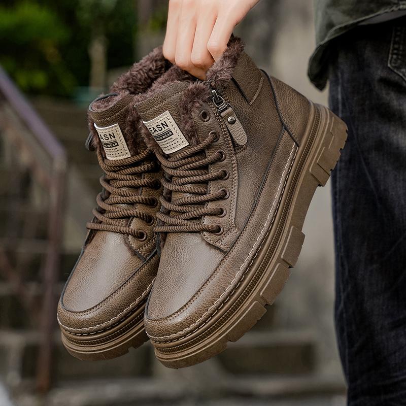 Luxury Brand Men's Ankle Boots Leather Mens Bussiness Cotton Boots Winter Warm Snow Boots with Fur Non-slip High Top Work Shoes — koupit online v obchodě na marketplace Joom