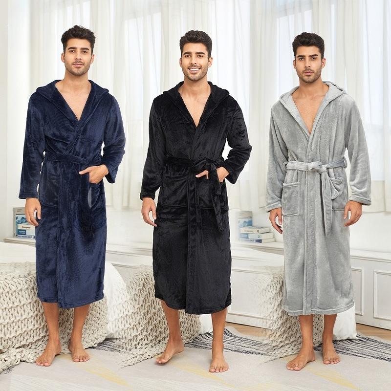 Hooded Robes for Men Full Length Spa Bathrobes Soft House Sleepwear Coat with Hood and Pockets Men's Winter Warm Plush Fleece Robe Hooded Fluffy Robes — koupit online v obchodě na marketplace Joom