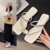Premium sandals women's summer outer wear 2025 new fairy wind pearl low heel set toe seaside beach cool slippers women