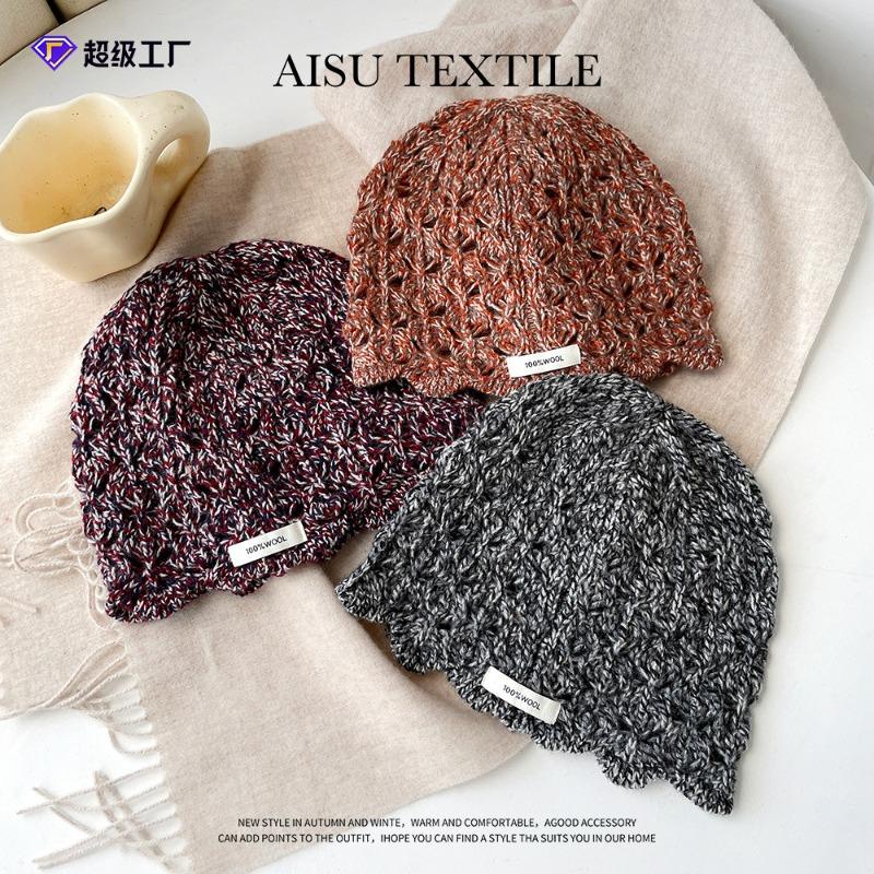 Autumn new fashion 0% all-wool crochet knitted hat women's hollow design bag head wool hat — koupit online v obchodě na marketplace Joom