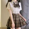 Japonská JK uniforma: Set bílé košile s krátkým rukávem a hnědé kostkované plisované sukně — koupit online v obchodě na marketplace Joom