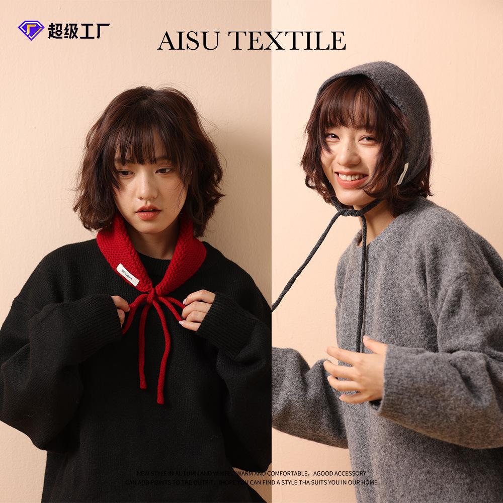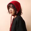 Autumn and winter women's red knitted ear protection headscarf, new female student warm fashion versatile ear protection hat scarf