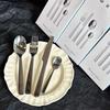 Vybraná čtyřdílná sada nádobí v západním stylu, včetně nožů, vidličky, lžíce a měničů hůlek, pro splnění různých stravovacích potřeb a předvedení špičkového životního stylu.