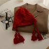 Sweet hollow knitted bag head hat autumn and winter travel photo single product fringed strap red knitted wool hat women