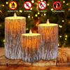 LED Candle Decor Light Flameless Real Wax Battery Operated Electronic Candles With Remote Control Flickering Pillar Bark Candle