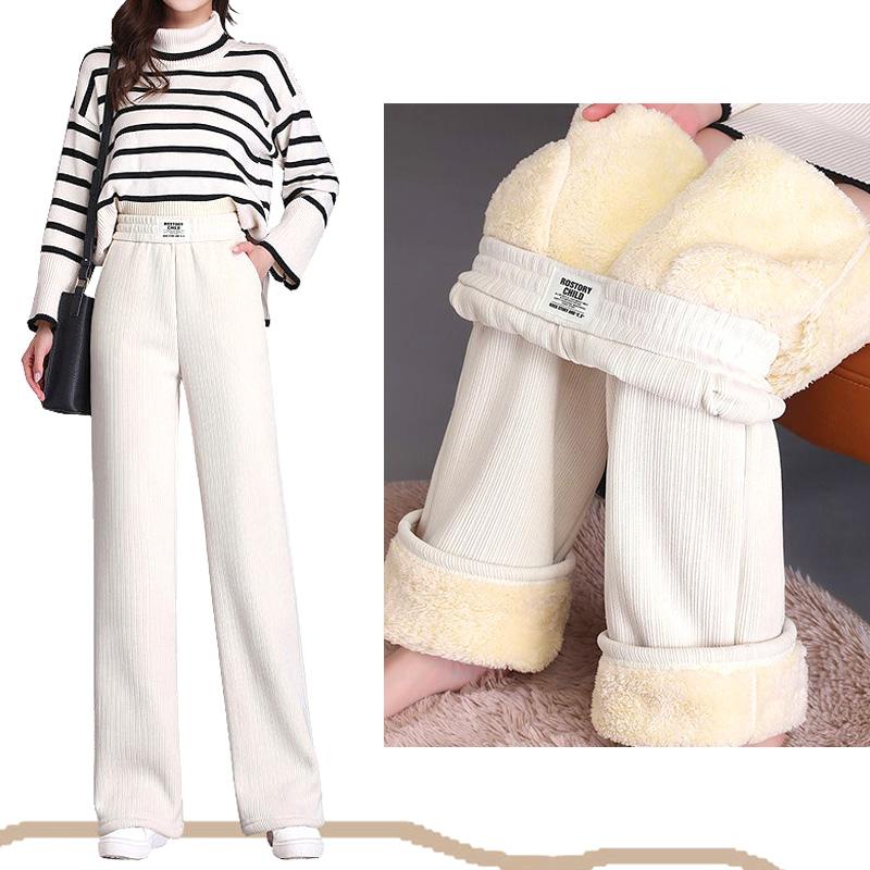 Kalhoty s vysokým pasem a širokými nohavicemi s fleecovou podšívkou a nadýšenou jehněčí podšívkou - Zimní oblečení v korejském stylu — koupit online v obchodě na marketplace Joom