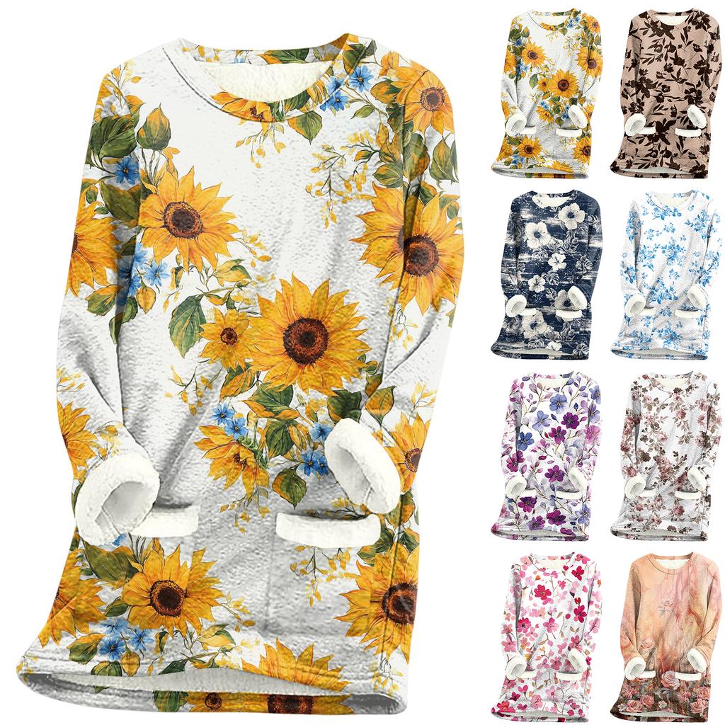 Dámský top s kulatým výstřihem s potiskem, zahuštěný plyšový kašmírový hřejivý dlouhý top — koupit online v obchodě na marketplace Joom