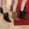 Super soft lambskin~ pleated tip inner height increase 5cm small short boots women's retro niche Martin boots western cowboy boots