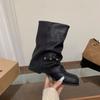 Podpatek Černé Martensky Dámské Boty 2025 Nové Jaro a Podzim Lokomotivní Střední Boty Kalhotové Boty se Sukní Krátké Boty