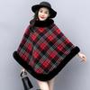 Sleeveless Bat Shirt Plaid Cloak Shawl Women's Pullover Fur Collar Ring Warm Cloak Jacket — koupit online v obchodě na marketplace Joom