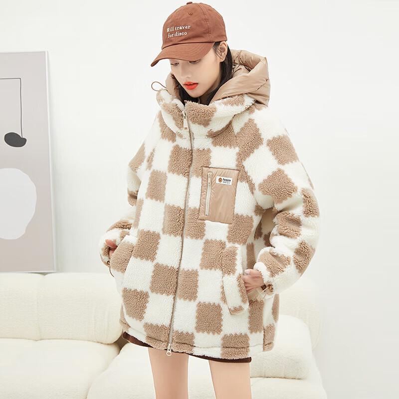 Dámská kostkovaná péřová bunda YAYA z umělé jehněčí vlny — koupit online v obchodě na marketplace Joom