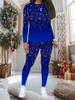 Women's Flower Print 2-Piece Outfit: Long Sleeve Crew Neck Top & Pants, Holiday Limited Casual Party Gift Suit