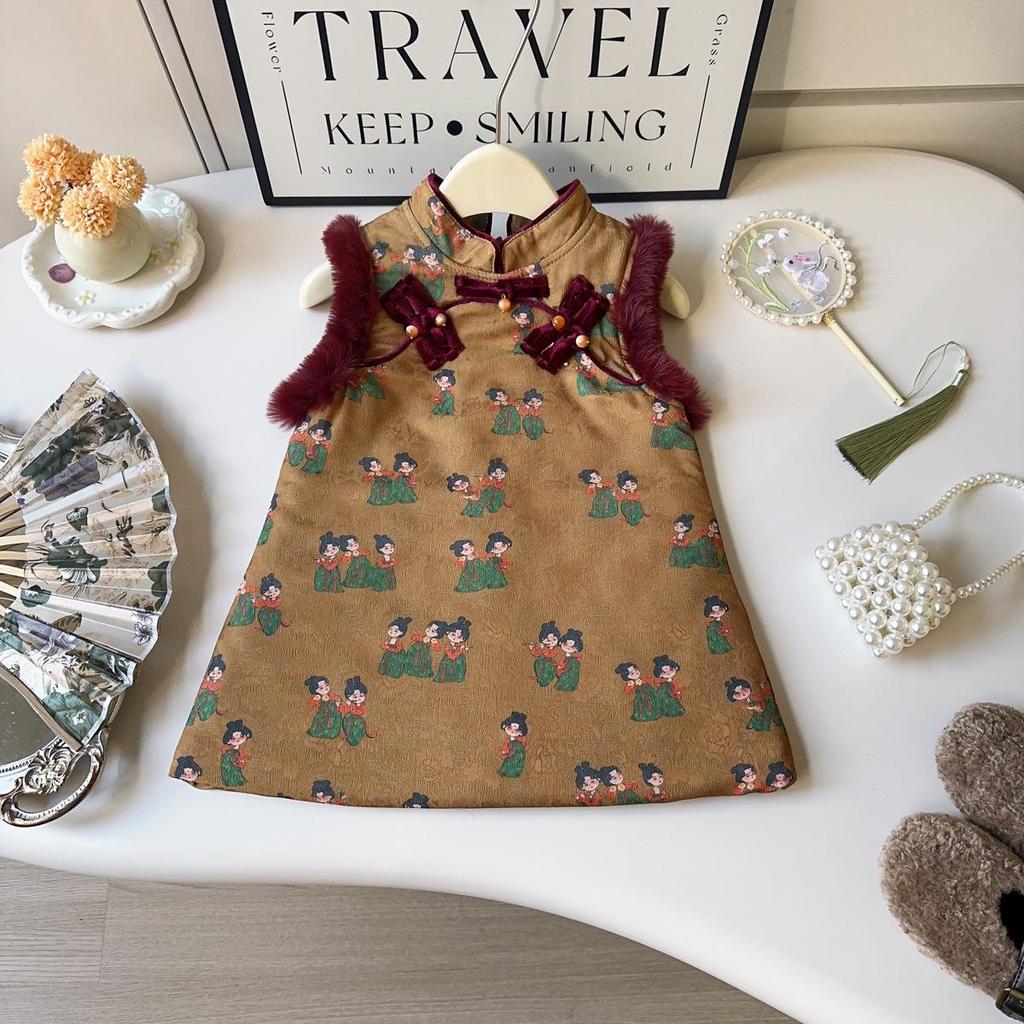 Girls' Sleeveless Qipao Winter Dress - Baby Hanfu Tang-Style Vest AWA898 — koupit online v obchodě na marketplace Joom