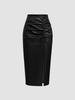 Solid Color PU Leather High Waist Ruched Midi Skirt with Drawstring Slit — koupit online v obchodě na marketplace Joom