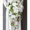 Elegantní bílá kaskádová kytice: Umělé květiny Phalaenopsis a Kalla pro svatební fotografování