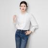 Doplňte svůj šatník tímto elegantním topem s dlouhým rukávem, ušitým z měkké směsi spandexu pro pohodlné nošení.. Tato košile s jednobarevným vzorem, navržená s elegantními zvonovými rukávy a stojáčkem, dodává nádech sofistikovanosti každému ležérnímu outfitu.. Jemné krajkové detaily dodávají okouzlující a ženský nádech, což z něj činí všestranný kousek pro různé příležitosti.. Tento top, který se perfektně hodí k vašim oblíbeným kalhotám nebo sukním, je nezbytným doplňkem vaší sbírky.