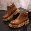 Pánské kožené Chelsea boty bez tkaniček - Kotníkové, Britský styl, s vnitřním zvýšením výšky a teplem Martinových bot.